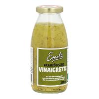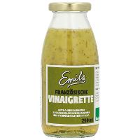Emils Französische Vinaigrette&Dip (Bioland) in der 250ml FlascheKräuter und Senf ergänzt um kräftige Öle. Eine kleine Geschmacksexplosion aus feinen Noten. Zu kräftigen und bitteren Salaten, zu Käse, Sandwiches und ganz allgemein als Verleckerung.BIOLAND, Vegan**, Unpasteurisiert, Glutenfrei nach DZG, Lactosefrei, null Zusatzstoffe.** Garantiert gelatinefrei: 100% vegane Essige & veganes Etikettenpapier: 100% kaseinfrei.Besonderheiten:Vegan, unpasteurisiert, Lactosefrei, Glutenfrei nach DZG, konsequent ohne Tricks Stabilisatoren,Verdickungsmittel. 100% Bio. Bioland-Qualität.Herstellung:Der Gegenentwurf von Massenproduktion. Qualitätsverliebte Handarbeit hergestellt in Deutschland - im eigenen Manufaturbetrieb.