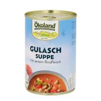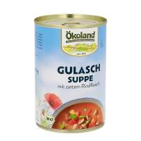 Gulaschsuppe ist ein traditionelles Nationalgericht in Ungarn. Ihren Namen hat sie vom ungarischen Wort Gulyas - was -Rinderhirtenfleisch- bedeutet. Ganz nach dem Vorbild der Magyaren-Küche haben wir die Rezeptur für unsere Ökoland Gulaschsuppe komponiert: Würzige Gemüsepaprika und ein hoher Rindfleischanteil sorgen für den exzellenten Geschmack. Und was das hochwertige Fleisch angeht: Sie können sicher sein, dass unsere Bio-Bauern konsequent für eine artgerechte Haltung und gesunde Fütterung der Tiere sorgen. Die Gulaschsuppe schmeckt übrigens auch hervorragend als Soße zu Reis, Nudeln oder Kartoffeln.