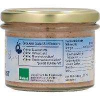 54% Schweinefleisch*, 24% Schweineleber*, Schweinespeck*, Zwiebeln*, Meersalz, Gewürze* (Pfeffer*, Muskatnuss*, Piment*, Nelken*, Ingwer*), Kräuter* (Majoran*, Thymian*).