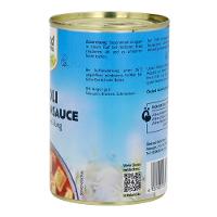 57 % Tomatensauce (Trinkwasser, 6,6 % Tomatenmark*, Rohrohrzucker*, 1,4 % Tomatenpulver*, Steinsalz, Maisstärke*, WEIZENMEHL*,