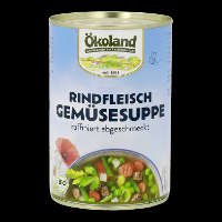 Eine kräftige Suppe mit Rindfleisch ist ein Klassiker der deutschen Küche - ein schmackhaftes Gericht, das mit wertvollen knackigen Gemüsearten ergänzt wird. Bei der Zubereitung unserer Ökoland Rindfleisch Gemüse Suppe wählen wir gezielt magere und zarte Bio-Rindfleischstücke aus, die zusammen mit der bunten Gemüsemischung einen leckeren und kräftigenden Suppengenuss bieten. Bewusst ohne Sättigungsbeilage.