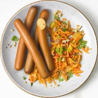 Die pikanten vegetarischen Würstchen von Ökoland sind eine hervorragende Alternative für alle, die auf Fleisch verzichten möchten. Die Würstchen werden aus hochwertigem Weizen- und Eiweiß (Seitan) hergestellt, mit Paprika und anderen Gewürzen pikant abgeschmeckt und eignen sich sehr gut als Einlage für Eintöpfe oder als Hot-Dog Würstchen. Diese vegetarischen Würstchen können auch besonders gut gegrillt oder in der Pfanne gebraten werden, der Geschmack wird dadurch intensiver.